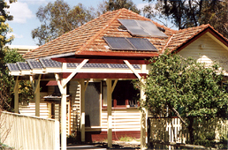 Solar panels as part of a self sufficient housing project. Photo: Ceres Institute, Melbourne, 2003.